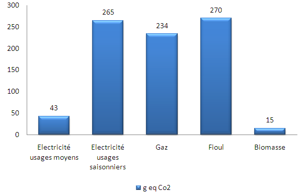Et encore, les conventions qui placent le chauffage électrique à une moyenne de 265 g de Co2 par kWh se basent sur une moyenne des émissions CO2 du chauffage électrique sur l’hiver. Ces valeurs moyennes se basent sur l’appareil de production de l’électricité actuel, qui de par la saisonnalité de la demande en électricité pour le chauffage conduit à des pics de consommation qui sont satisfaits par la mise en route de centrales polluantes, et le recours massif à l’importation d’électricité outre Rhin en base charbon.