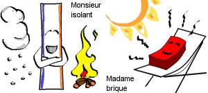 Ce rapide tour d’horizon fait, le schéma de notre maison bioclimatique émerge très naturellement : matériaux accumulateurs au milieu, isolants autour, et éventuellement structure porteuse en bois. Les accumulateurs internes peuvent être en n’importe quel matériau (parmi les accumulateurs), mais ils doivent avoir une couleur qui permette l’absorption du rayonnement solaire lumineux s’ils sont directement soumis à l’énergie solaire. La couleur du mur joue alors un grand rôle : s’il est blanc, il réfléchira la chaleur sans chauffer. Au contraire, une paroi noire va rapidement devenir brûlante en surface, ce qui n’est pas non plus le but recherché. La teinte idéale est celle de la terre : de brun clair à foncé en passant par les teintes ocre, oranges, rouges…